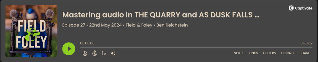 I was a guest on Ben Reichstein’s Field and Foley podcast, chatting about my career as a Composer turned Sound Designer.